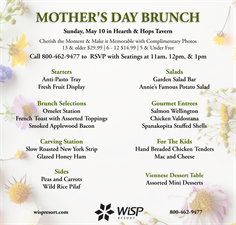 Celebrate Mother's Day at Wisp Resort in Hearth & Hops Tavern with a delicious buffet and complimentary photos for you and your mom! Enjoy a flavorful brunch featuring classic breakfast selections, gourmet lunch entrées, and assorted desserts, paired with personal photos and a special gift for Moms. Take in the beauty of the surrounding mountains while celebrating the women who we couldn't do life without.